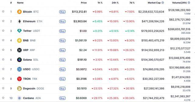 以太坊价格从4363美元暴跌至3468美元,跌幅超20%;艾达币、狗狗币等山寨币跌幅普遍超过30%,部分小众项目价格在几分钟内从0.5美元跌至0.01美元,近乎归零。