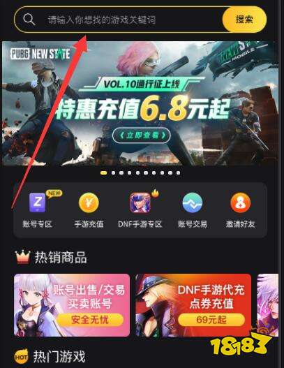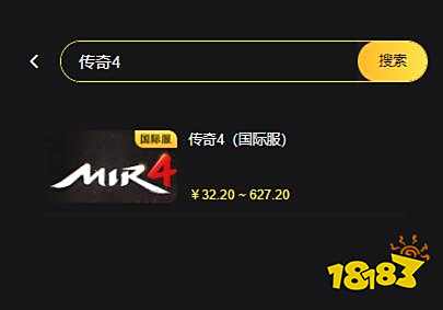 第二步:在搜索栏中输入想要充值的游戏,比如我想充值传奇4,则键入【传奇4】,并在下方检索栏中选择传奇4国际服充值。