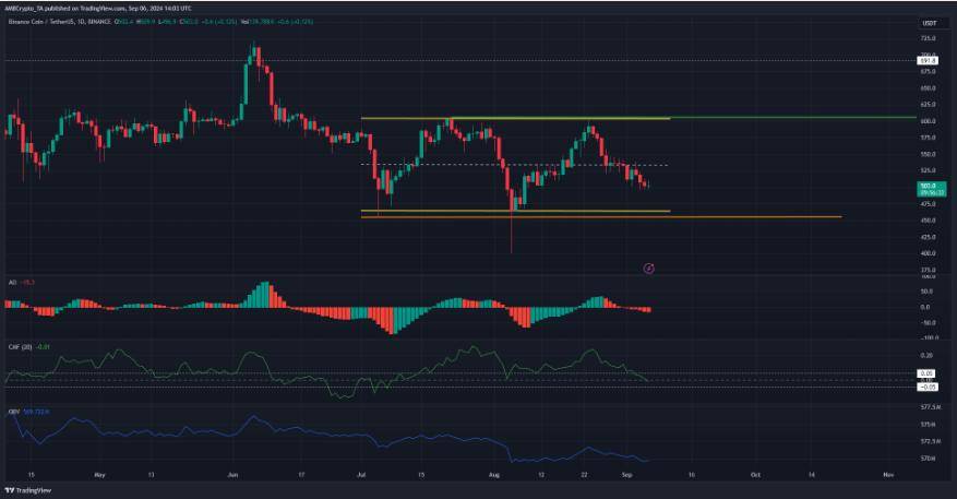 几天前,Binance Coin [BNB] 出现了看跌背离,自那以来,该交易代币的价格已下跌 2%。8 月最后一周从心理上的 600 美元阻力位被拒仍在发挥作用。